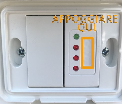 2. Disattivare l'allarme tramite chiave elettronica prima di entrare appoggiando la chiavetta nel riquadro indicato fino a che le spie luminose non smettono di lampeggiare (circa 5 sec). In alternativa chiedere a Filippo di disattivare da remoto;